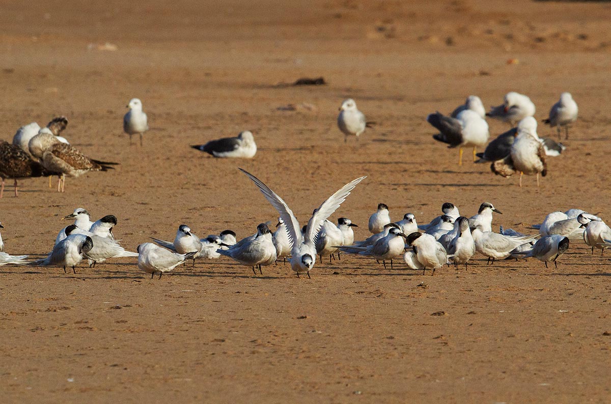 The west coast of Morocco and the North Sea are both part of the East Atlantic flyway. Many birds migrate along this flyway between arctic breeding grounds and southern wintering quarters. Some birds that breed around the North Sea, like Spoonbill and Sandwich Tern, winter along the west coast of Africa.